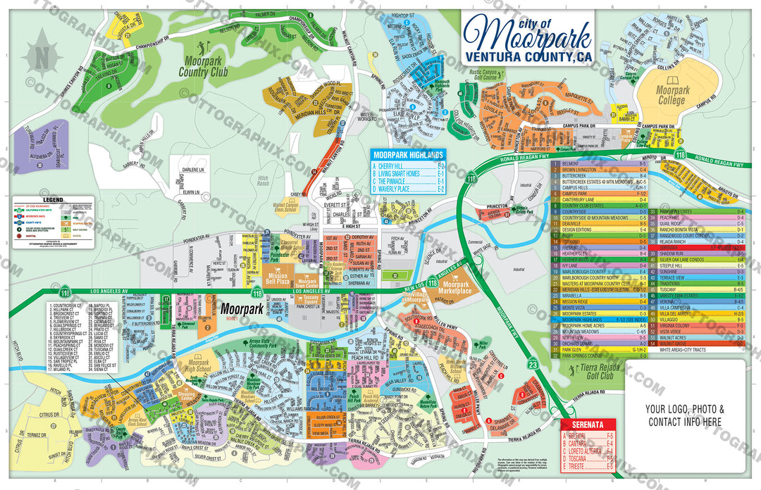 Moorpark Map with Subdivisions Ventura County, CA โ Otto Maps